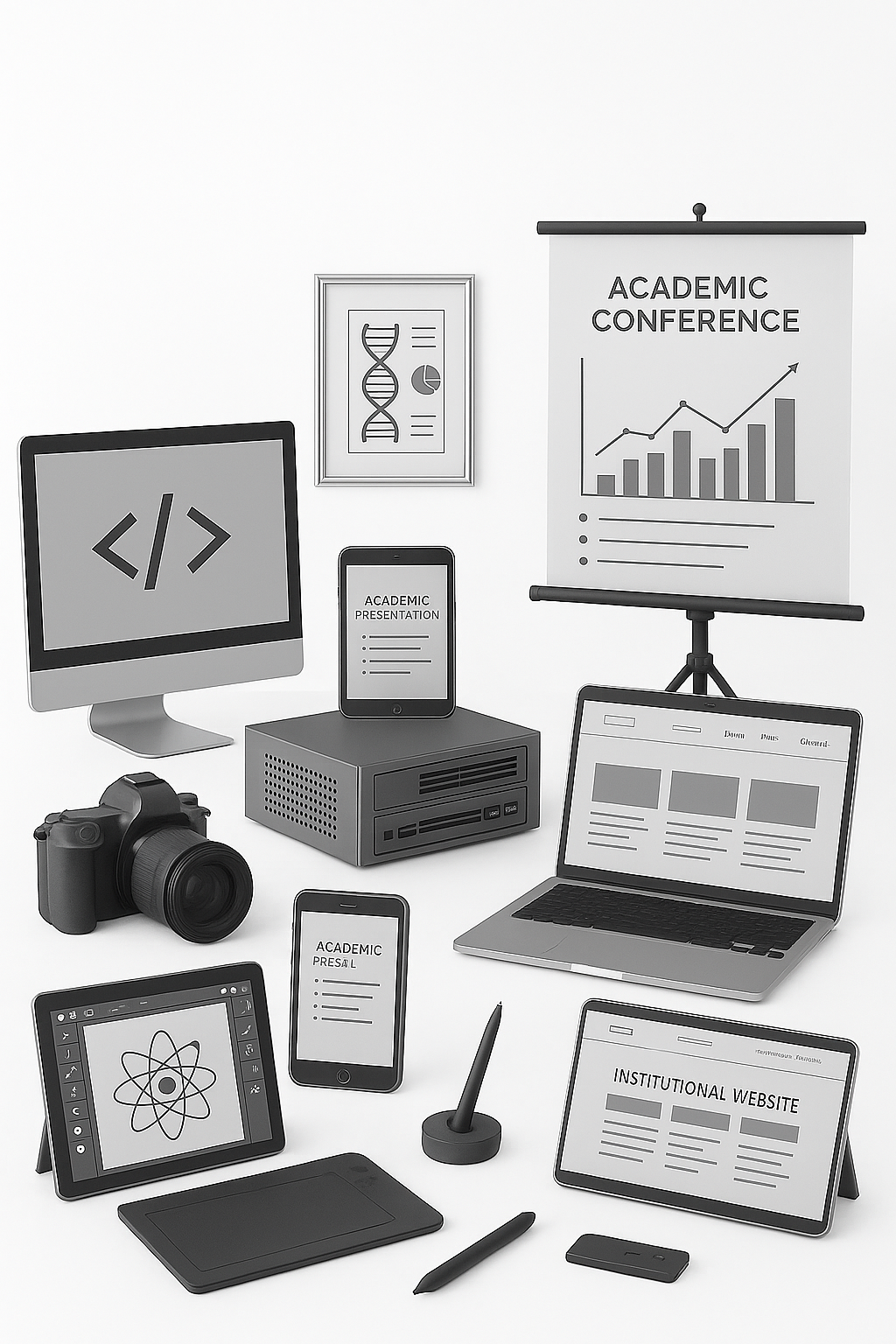 Je conçois et réalise des outils numériques professionnels dédiés à la communauté académique et scientifique : création de sites web institutionnels pour laboratoires, conférences, colloques et projets de recherche, conception de supports graphiques et visuels scientifiques, ainsi que développement d’éléments de communication pour la diffusion et la valorisation des résultats. Mon approche allie design clair, structuration méthodique de l’information et adéquation avec les standards académiques, garantissant une visibilité optimale et une reconnaissance institutionnelle.